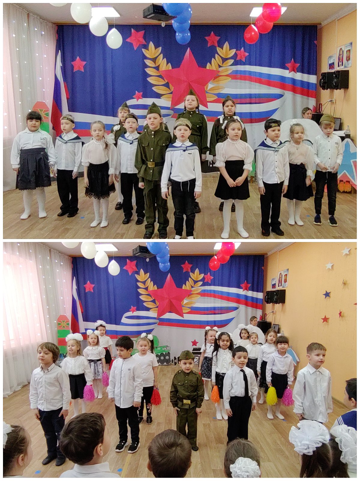 20 февраля состоялся праздничный концерт, посвящённый Дню защитника Отечества. В нём приняли участие ребята из разных групп, их старшие братья и сестры, родители. А почётными гостями и зрителями стали папы, дедушки, старшие братья, проходившие службу в рядах Российской армии, отставные и действующие военные, участники СВО и члены их семей.