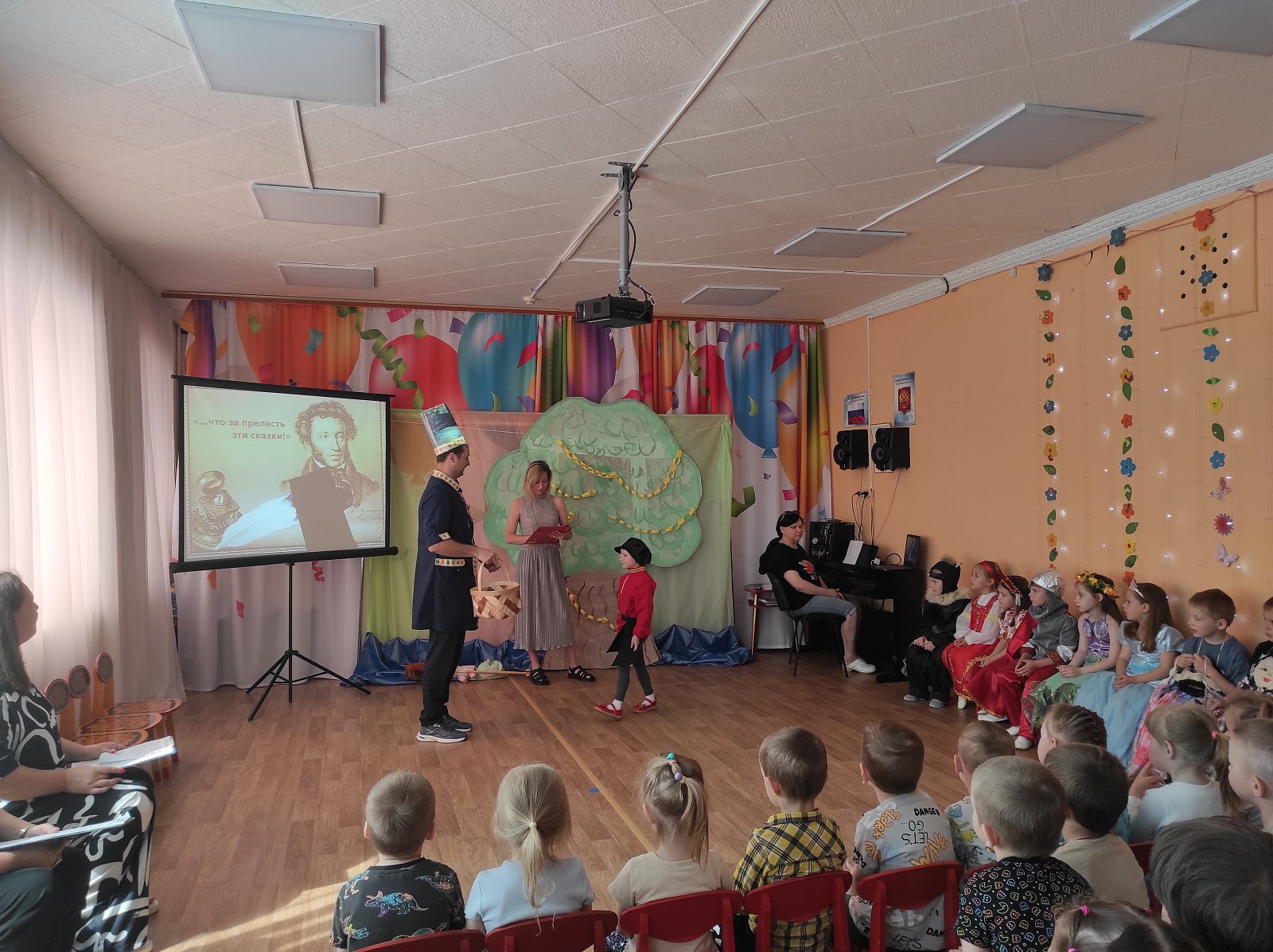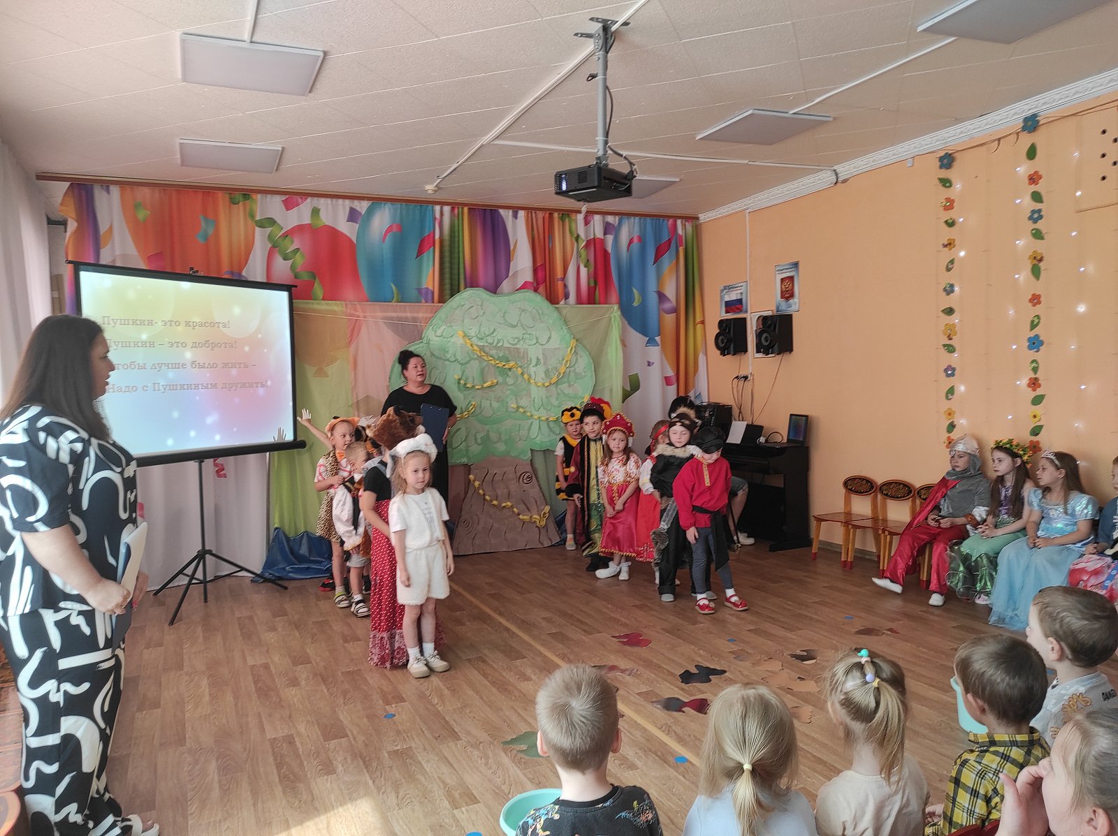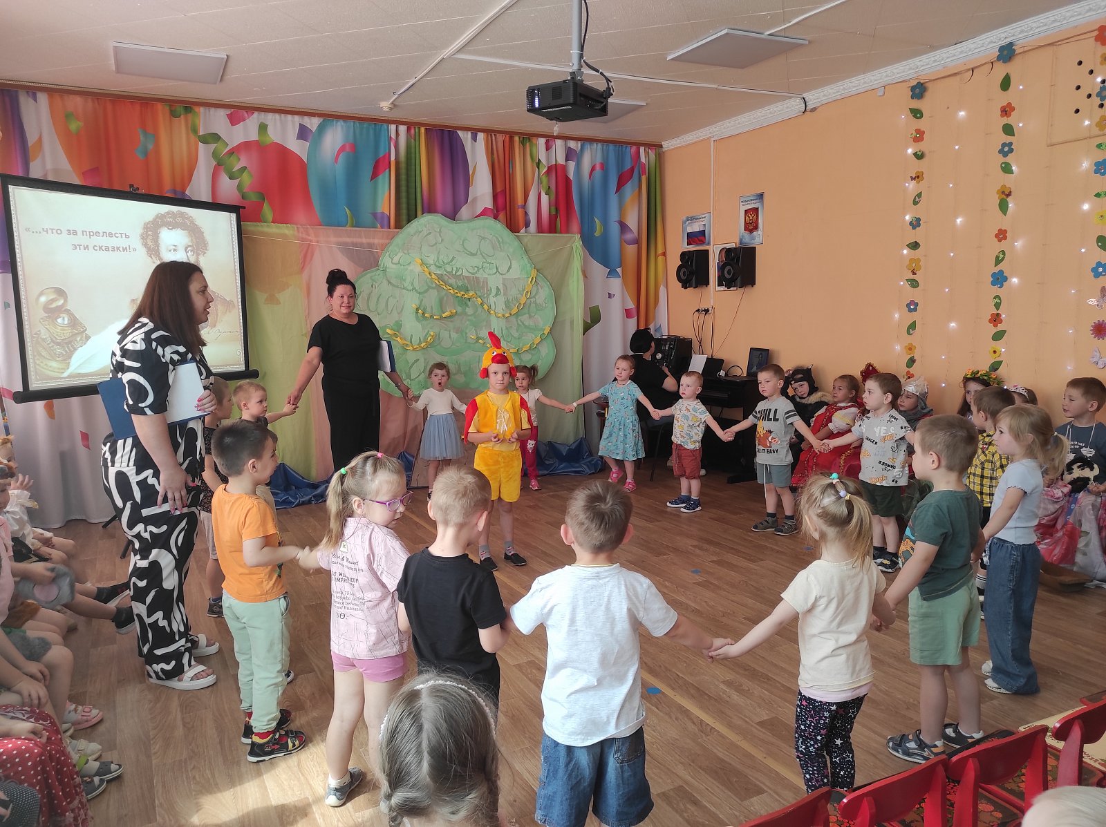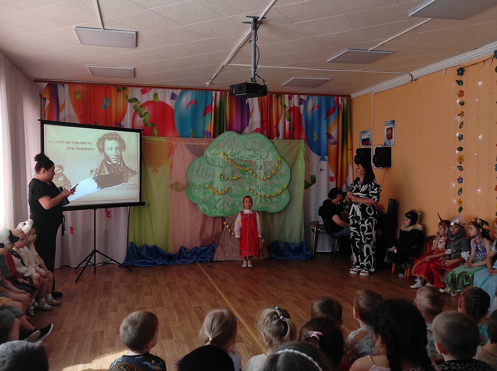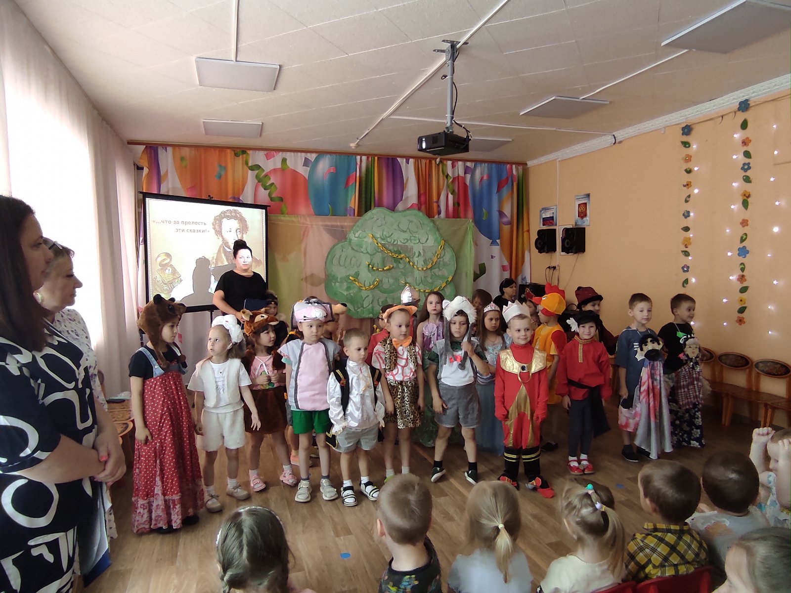 6 июня в нашем детском саду прошел «Пушкинский день». Для детей были организованы выставки книг великого русского поэта, в группах звучали тексты любимых с детства произведений. Воспитатели рассказали ребятам о жизни Александра Сергеевича. Во время развлечения, в музыкальном зале, воспитанники рассказывали стихи и отрывки из сказок, участвовали в викторине по произведениям Пушкина, играли, с большим удовольствием примерили на себя образы знаменитых и любимых героев. В инсценировках эпизодов вместе с юными артистами приняли участие родители. День получился интересным, познавательным и веселым.